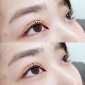 下がりまつ毛で目元の印象が暗い方は、パリジェンヌラッシュリフトをすると目頭目尻の矯正効果によって、まぶた全体がリフトアップします☆