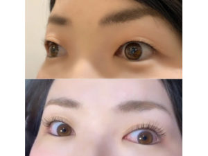 ↑こちらは上がラッシュアディクト使用前のラッシュリフト (まつげパーマ)後